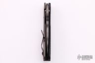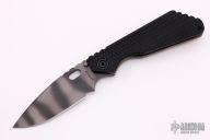 This MSC SMF framelock folder by Mick Strider features a tiger stripe blade and a dimple pattern black aluminum and flamed titanium frame and tip up titanium clip. Includes Hinderer "Lock Bar Stabilizer" for maximum reverse lock retention. Nice detent, lockup and blade seating. New from maker.