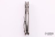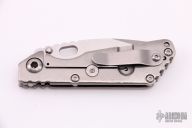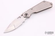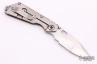 This SNG framelock folder by Mick Strider features a Nightmare Ground blade and an orange peel finished titanium frame and tip up titanium clip. Includes a "Lock Bar Stabilizer" for maximum reverse lock retention. Nice detent, lockup and blade seating. Comes with velcro case. New from maker at the CCKS.