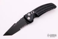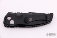 This EX-A01 by Hogue Knives is an Allen Elishewitz design, it features a black tanto partially serrated 154CM blade with notched thumbrest. The handle is black aluminum, tip up or down reversible black stainless steel clip. Has safety. Comes with Hogue box and papers. Excellent condition.