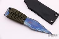 This flamed titanium push dagger by Mick Strider has a cord wrapped handle and a kydex sheath. New from maker.