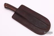 This boot knife by Jim Lee features a Damascus blade, .132" blade stock and .726" blade depth, full tapered tang construction. The handle has stainless steel dovetailed bolsters and Ironwood scales with nickel silver pins. Comes with a brown leather boot sheath. Has a couple light scratches, otherwise excellent condition.