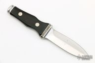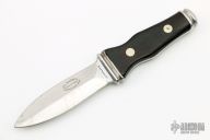 This is a very attractive boot knife from AG Russell. Blade is .128" thick and .884" deep at the ricasso and double-edged. Scales are ebony. Integral construction with nickel silver pins. Has scratches and some stains, otherwise good condition.