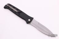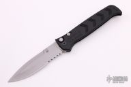 This Militia Auto by Rob Dalton features a bead blast finished and partially serrated blade and a black anodized aluminum frame. Titanium clip, tip up carry. Powerful coil spring action. Excellent condition. Has safety. #20164