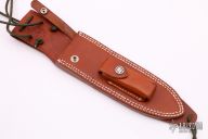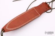 Model C – Supplied with Models 14, 15, 17 and 18. Especially designed under the auspices of the U.S. Marine Corps for these knives. With hone in pocket. Fitted with tie-down thongs (5 1/2″ ‘C’ sheath has single stitch and 7 1/2″ ‘C’ sheath has double stitching). Excellent condition.