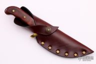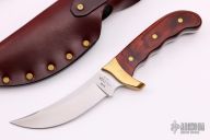 This Kalinga by Buck Knives features a satin finished upswept blade, .178" blade stock and 1.098" blade depth, full tang construction. The handle has brass guard, dymondwood scales with brass pins. Comes with a brown leather sheath, original box and papers. Excellent condition.