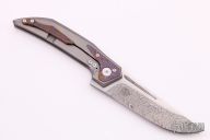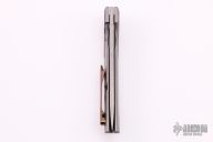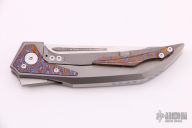 This Future model has a Damasteel blade and a titanium handle with a mokuti pocket clip and inlays. The Future represents the first ever integral folding knife from Reate Knives. This Bharucha designed flipper offers a 1 piece titanium handle for extreme strength and reliability. The Future features a Damasteel blade, yet it remains slim and sleek for comfortable EDC. A mokuti pocket clip and inlays finish off the collectible design. Features: Integral handle made from a solid billet of titanium provides strength and durability. Bearing pivot disassembles easily for cleaning and maintaining the knife. Comes with original zippered case. Excellent condition.