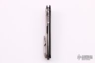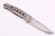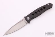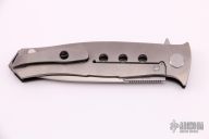 This "Russian Dr. Death" flipper with carbon fiber presentation side scale is a collaboration between Shirogorov and Tom Mayo. This one is #118 of 200 that was made. The blade features a very fine bead blasted/tumbled finish and notched thumbrest and flipper. The handle has a titanium lock side, classic hole pattern, titanium backspacer with lanyard hole and jimping, tip up titanium clip with hole through clip and all the way through the frame, stainless lockbar insert. Has the Mayo and Shirogorov logos near the butt. Nice detent, lockup and blade seating. Knife is in excellent condition. This knife is chalked full of details and is an amazing representation of Tom Mayo's Dr. Death. Comes with original box and COA.