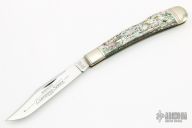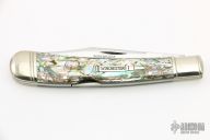 This Turn of the Century Commemorative by Winchester is #065. It has a mirror polished blade with nail nick. the handle has fluted nickel silver bolsters, abalone covers with a .270 bullet nickel silver escutcheon, brass lines, stainless steel backspacer. Comes with original box and papers. Has some light scratches, otherwise excellent condition.