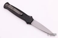 The Bodyguard side opening auto by Piranha Knives features a blasted finish bayonet blade, ribbed aircraft aluminum handle, and titanium pocket clip. Fires smoothly. Strong action and good lockup.  Includes the original box.  Excellent Condition.