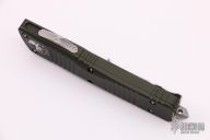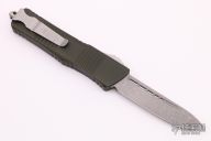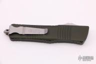 This Combat Troodon by Microtech features an Apocalyptic finished tanto blade. The handle has an OD Green aluminum frame with apocalyptic finished hardware and tip down clip. Comes with original box and papers. Dated 08/2018 and s/n 20457. Has been resharpened, really sharp, has a couple light scuffs, otherwise excellent condition.