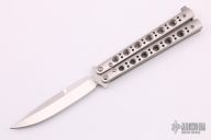 This Model 62 Balisong by Benchmade features a stonewashed spear point D2 blade with a false top edge. The handle has stainless steel handles and latch. Comes with original box, sheath and papers. Excellent condition.