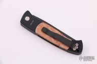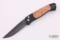 The Brend Auto by Pro-Tech Knives features Walter Brend's famous "Model 1" blade shape in a small package. Coil spring side-opening automatic. It has a black blade and black aluminum handle with wood inlays, tip up black stainless steel clip. Excellent condition, PR2 #576. Comes with a Protech box and papers, not original.