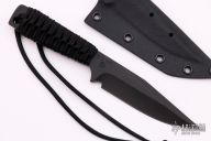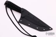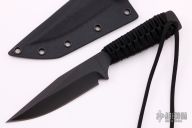 The WP by Mick Strider features a black clip point blade with false top edge, .281" Blade Stock and 1.116" Blade Depth, full tang construction with black paracord. New from maker. Comes with kydex sheath.