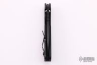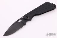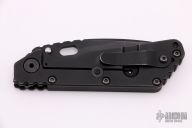 This Mick Strider SMF Fatty framelock folder features a black blade with thumbhole and notched thumbrest. The handle has a black aluminum and flamed titanium frame with titanium clip, tip up carry. Jimping on blade spine. Nice lockup, detent, and blade seating. Has been resharpened and has some scuffs, otherwise good condition.