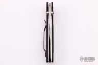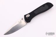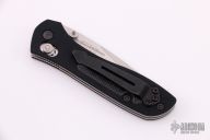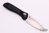 This 707 Sequel by Benchmade features a satin finish drop point blade with swedge and dual thumb studs. The handle is comprised of black anodized aluminum with textured G10 inlays over stainless steel liners and black FRN backspacer. Black coated reversible tip up clip. This model has been discontinued. Includes the original box and papers. Excellent Condition.