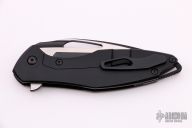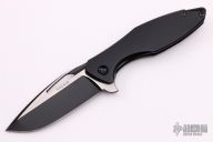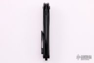 This Arius by Koenig knives features a black blade with satin finished flats, thumbhole and flipper. The handle has a nicely contoured black titanium frame with a matching tip up clip and backspacer. Has ceramic bearings and a ceramic detent ball. Nice detent, lockup and blade seating. Comes with original box and COA dated 5/17/2017. Excellent condition.