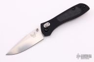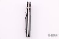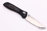 This 707 Sequel by Benchmade features a satin finish drop point blade with swedge and dual thumb studs. The handle is comprised of black anodized aluminum with textured G10 inlays over stainless steel liners and black FRN backspacer. Black coated reversible tip up clip. This model has been discontinued. Includes the original box and papers. Excellent Condition.