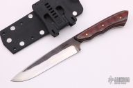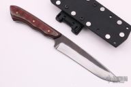 This knife by Master Smith Murray Carter features a hand forged blade made Blue Steel core laminated between spring steel. This steel affords the keenest possible edge. The handle has python G-10 scales with black G-10 liners and nickel silver pins. .146" thickness with a 1.166" blade depth, full tapered tang. Comes with kydex sheath with TekLok. Has some sheath scratches, otherwise excellent condition.