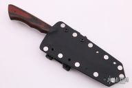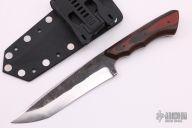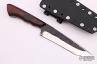 This knife by Master Smith Murray Carter features a hand forged blade made Blue Steel core laminated between spring steel. This steel affords the keenest possible edge. The handle has red/black linen micarta scales with black carbon fiber liners and black pins. .142" thickness with a 1.377" blade depth, full tapered tang. Comes with kydex sheath with TekLok. Excellent condition.