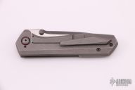 This Continuum by Tuff Knives, features a two-tone blade with a false top edge and dual thumbstuds. The handle has a tumbled titanium frame, kirinite pivot collars, tip up pocket clip with hidden screws. Excellent fit and finish. Dead center blade seating, smooth action and nice detent. Comes with zippered case and COA. Excellent condition.