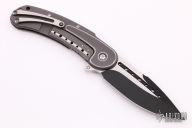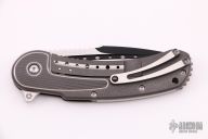 The popular field grade Bodega has been discontinued and replaced with this new offering from Begg Knives SteelCraft Series, the Bodega. This EDC friendly framelock features a two-tone black finished blade with fullers, swedge, and notched rest for thumb placement. The titanium handle is grey tumbled and machined to give a two-tone finish. This is a very comfortable knife that flips well and locks up with no play. Blade is centered when closed. 6Al4V titanium handle CPM-S35VN blade steel Framelock with steel lock tip insert Ceramic detent Ceramic IKBS. Excellent condition. Includes original box and papers.