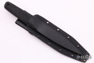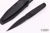 "The Entrek USA Dagger features a black double-edged blade, .241" blade stock and .975" blade depth, full tang construction with black canvas micarta scales. Comes with a kydex sheath. Has some scuffs, otherwise excellent condition.