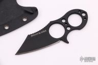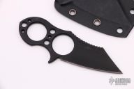 This Silent Soldier Ranger V2 by Brous Blades has a black wharncliffe blade with notched thumbrest. Has matching finish on the handle with 3-finger ergonomics. .190" blade stock, 1.435" depth. Has a couple light scuffs, otherwise excellent condition. Comes with Kydex sheath.
