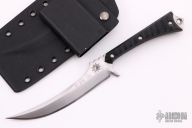 This Persian EDC by Richard Derespina is a TAD Gear special edition, it features a hand rub satin finished blade with notched thumbrest and jeweled flats, .200" blade stock and 1.080" blade depth, full tang construction. The handle has black G-10 scales. Comes with a kydex sheath. Excellent condition; a few light scratches on blade.