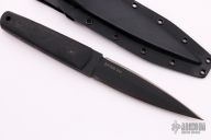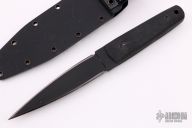 "The Entrek USA Dagger features a black double-edged blade, .251" blade stock and .975" blade depth, full tang construction with black canvas micarta scales. Comes with a kydex sheath. Has some scuffs, otherwise excellent condition.