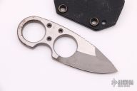 "Jason Brous began his efforts in knifemaking with the benefit of nearly 10 years of experience in CNC machining. His father owns a shop that specializes in the custom machining of high-precision components, mainly for the medical industry. Jason spent a lot of time in his father’s shop while growing up, and by his mid teens was actively helping out with production. His skills and knowledge steadily increased and by the time he was 20 he was a seasoned and very competent machinist. Jason's interest in knives actually began with art - specifically a style called “Bio-mechanical” - as practiced by one of his favorite artists, a Brazilian painter and tattooist named Lango. Biomechanical art (also called Biomech) is a surrealistic style of art that combines elements of machines and robotics with organic animal features. Intrigued by this style of art and its similarity to many fantasy knives, Jason figured that knifemaking would be a natural extension of his metalworking skills and an appropriate medium for his artistic ideas. Although he had no specific training in knifemaking, in 2010 he designed and made his first knife - a fantasy design with a Biomech flavor. Through persistent trial and error, Jason changed his style of knife design to focus on functional simplicity, while still maintaining a strong artistic signature. His early successes came in the form of a series of stout neck knives with dual finger-hole grips. Fans of these “Silent Soldier” neck knives began asking for other expressions of the design. Since then, Jason has created numerous variations including a clip point version, a tanto version and the very popular folder version called the Silent Soldier Flipper."