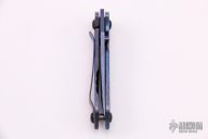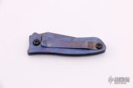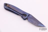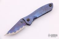This little framelock folder by Warren Thomas features a chisel ground tanto blade with carbide edge and single thumbstud. The handle has a titanium frame and tip up clip. Blade and handle are fingerprint anodized. Nice detent, lockup and blade seating. Has some scratches, otherwise good condition.