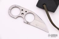 "Jason Brous began his efforts in knifemaking with the benefit of nearly 10 years of experience in CNC machining. His father owns a shop that specializes in the custom machining of high-precision components, mainly for the medical industry. Jason spent a lot of time in his father’s shop while growing up, and by his mid teens was actively helping out with production. His skills and knowledge steadily increased and by the time he was 20 he was a seasoned and very competent machinist. Jason's interest in knives actually began with art - specifically a style called “Bio-mechanical” - as practiced by one of his favorite artists, a Brazilian painter and tattooist named Lango. Biomechanical art (also called Biomech) is a surrealistic style of art that combines elements of machines and robotics with organic animal features. Intrigued by this style of art and its similarity to many fantasy knives, Jason figured that knifemaking would be a natural extension of his metalworking skills and an appropriate medium for his artistic ideas. Although he had no specific training in knifemaking, in 2010 he designed and made his first knife - a fantasy design with a Biomech flavor. Through persistent trial and error, Jason changed his style of knife design to focus on functional simplicity, while still maintaining a strong artistic signature. His early successes came in the form of a series of stout neck knives with dual finger-hole grips. Fans of these “Silent Soldier” neck knives began asking for other expressions of the design. Since then, Jason has created numerous variations including a clip point version, a tanto version and the very popular folder version called the Silent Soldier Flipper."