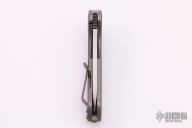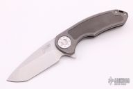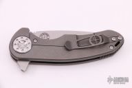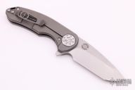This F3 Medium by Curtiss Knives features a stonewashed blade with notched thumb rest and flipper. The handle features an acid washed titanium frame with micro diamond texturing and a titanium tip up pocket clip. Smooth and fast opening using a Caged Bearing System. Nice blade seating, detent and lock up.  Excellent condition.