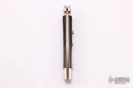 This lockback Auto by AGA Campolin has a polished stainless steel spear point blade with false top edge. Handle is buffalo horn with nickel silver bolsters, brass liners,stainless steel back spacer. Has a few light scratches, otherwise excellent condition. Dated 2014