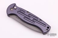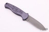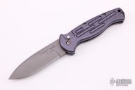 This AFO Side Opening Auto has a bead blasted stainless steel drop point blade. Handle is anodized aluminum with milled fullers and lanyard hole. Excellent condition.