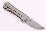 This TS128 by TwoSun Knives features a tumbled blade with notched flipper. The handle has carbon fiber and tumbled titanium frame with matching backspacer and tip up clip. Nice detent, lockup and blade seating. Comes with original box. Excellent condition.