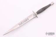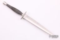 This Case OSS Special Forces dagger features a satin finished double edged blade, .141" blade stock and .868" blade depth, hidden tang construction with a knurled metal handle. Comes with a black leather sheath, original box and papers. Excellent condition. "Remember Pearl Harbor December 7, 1941 - December 7, 2001" on the blade.