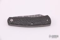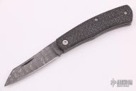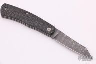 This "Native" pattern custom slip joint from Jim Dunlap features a Vegas Forge Damascus sheepsfoot style blade with a single nail nick. The handle is comprised of carbon fiber covers with Titanium liners and a Damascus backspacer. Flush in the closed, half stop and open position. Includes a padded zippered case. Brand New From Maker!