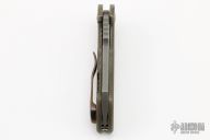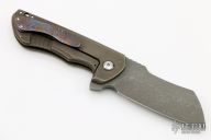 This Slim Dao flipper from Michael Burch features an acid etched blade with a notched thumbrest.The handle has an anodized titanium frame, timascus tip up clip, zirconium pivot collars and floating back spacer. Nice detent, lockup and blade seating, rides on bearings. Excellent condition. Comes with a zippered case.