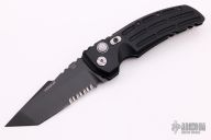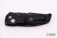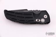This EX-A01 by Hogue Knives is an Allen Elishewitz design, it features a black tanto partially serrated 154CM blade with notched thumbrest. The handle is black aluminum, tip up or down reversible black stainless steel clip. Has safety. Comes with Hogue box and papers. Excellent condition.