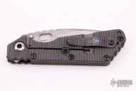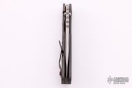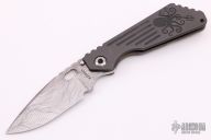 This MSC SMF framelock folder by Mick Strider features a laser engraved blade and a grey aluminum and flamed titanium frame and tip up titanium clip. Includes Hinderer "Lock Bar Stabilizer" for maximum reverse lock retention. Nice detent, lockup and blade seating. New condition.