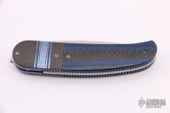 This LL6 by Herucus Blomerus features a hand rub satin finished blade with notched front flipper. The handle has fluted zirconium bolsters, G10 and carbon fiber scales, anodized and fileworked/coin edged titanium liners, stainless steel backspacer. Nice detent, lockup and blade seating. Comes with nylon velcro case and COA dated 19/08/2016.  Excellent Condition.