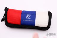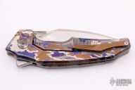 This Muscle flipper by Custom Knife Factory is a Tashi Bharucha design. It features a satin finished, M390 blade with swedge and flipper. The handle is comprised of milled and tumbled titanium with a matching tip up clip over tumbled titanium backspacer. Stainless lockface insert. Dead center blade seating, crisp detent and rock solid lock up. Includes padded and zippered case and COA dated 12/16.  Excellent Condition.