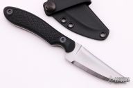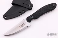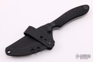 This Disciple from Bantang Knives and Shivworks features a double-edged, satin finish blade. The handle is comprised of textured black G-10 over full tang construction with a kydex sheath. Excellent condition.