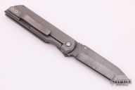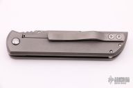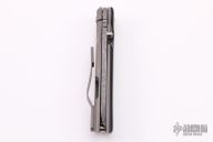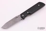 This Ronin by Red Horse Knives features a tumble finished chisel ground tanto blade with notched thumbrest and a single thumbstud. The handle has a tumble finished titanium frame with a black G-10 scale, titanium tip up clip. Nice detent, lockup and blade seating. Comes with a zippered case. Excellent condition.