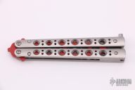 Benchmade announces the Model 62T Balisong Trainer for 2012! The BM 62T knife features a 440C Red Cerakote training blade. The handles are skeletonized to reduce weight and sport a polished stainless steel finish. Sandwich style construction with stainless steel back spacers. The 62 Bali also features Zen pins and the classic T latch to secure the knife open and closed. Made in the USA. Features: Skeletonized Handles T Latch for Easy Open Unparalleled Benchmade Fit and Finish Comes with original box and papers. Excellent Condition.