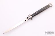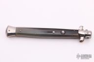 This 13" Swivel Bolster features a satin finish drop point. The handle is comprised of stainless steel guard and bolsters with acrylic scales over brass liners and stainless steel backspacers. Has some scratches, otherwise good condition.