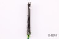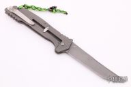 This Komodo Dragon by Rob Dalton features a bead blasted tanto blade. The handle has a bead blasted titanium frame with tip up satin finished titanium clip and overtravel stop. Nice detent, lockup and blade seating. Excellent condition.