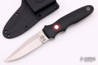 This KM-6 Arkansas Toothpick by Dozier knives features a satin finished D2 blade with false top edge, .186" blade stock and .918" blade depth. Full tang construction. The handle has black linen micarta scales with a red linen micarta insert, aluminum pins and lanyard hole. Comes with a kydex sheath with belt clip. Excellent condition.