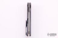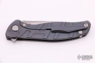 This Model 95 T framelock from Shirogorov features a flat ground tumble finished blade with notched thumbrest and flipper. The handle has a machined, anodized and tumble finished titanium frame with matching tip up clip and a single titanium barrel spacer at the butt along with a lanyard hole. Excellent lockup, strong detent, and perfect seating. Excellent condition. MRBS Comes with original box and papers.